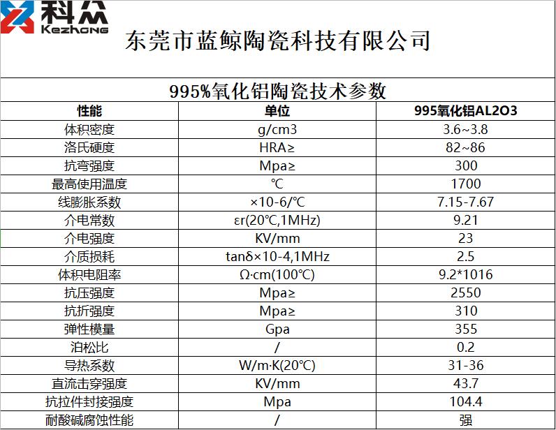 99.5%氧化鋁陶瓷技術參數